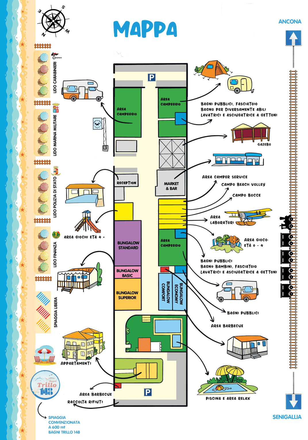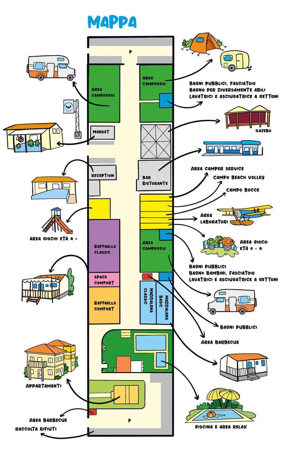When you think of a map you think of adventures in blue seas, green fields and hidden treasures. Your holiday is also a precious treasure. That’s why we thought of this map: so you won’t lose out on any entertainment.